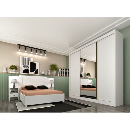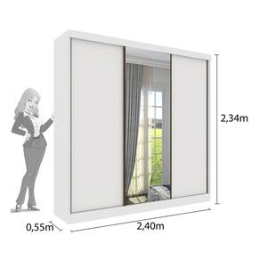 Guarda Roupa Casal com Espelho 3 Portas 4 Gavetas - Dacar-Neve - Tcil Móveis   O Guarda Roupa Dacar veio para agradar todos os gostos. Procurando elegância, modernidade e sofisticação para seu quarto? Este é o produto que irá te oferecer essas qualidades. Produto fabricado em MDP com 3 portas de correr, sendo a central com espelho, possui um excelente espaço interno bem distribuído, oferecendo máxima organização de forma prática. Suas gavetas possuem corrediças telescópicas que traz uma maior sofisticação para o guarda-roupa e também proporciona um mecanismo silencioso para abrir e fechar as gavetas, parte interna é na cor do produto e as portas são dupla face, escolha a melhor cor que combine com você e seu quarto. Garanta já o seu!   Faz parte deste anúncio: Guarda Roupa Casal com Espelho 3 Portas 4 Gavetas - Dacar  Obs: Objetos de decorações não inclusos.   Particularidades do guarda-roupa: Características: -Produto em MDP;  -4 gavetas com corrediças telescópicas; -Cabideiros em alumínio; -Espelho com película de segurança -Roldanas com rolamento;  -Costas inteiriças  -Trilhos inferiores em alumínio;  -Trilhos superiores em PVC -Perfil puxador nas portas em alumínio;  -Puxadores das gavetas em PVC -Portas dupla face.   Dimensões: Altura: 2,34 metros Largura: 2,40 metros Profundidade: 55 centímetros   Informações Importantes:. -O envio desse produto é feito através de transportadora. -Produtos podem apresentar diferenças de tonalidades entre a foto na tela e o produto real, devido a calibração de cor de tela.  -Limpar com flanela ou pano macio. Não utilizar álcool. Não utilizar produtos abrasivos ou corrosivos. -Nós prezamos pela qualidade da entrega em primeiro lugar, trabalhamos com transportadoras altamente selecionadas e os melhores materiais de embalagem. -A montagem é de total reponsabilidade do comprador. Antes de comprar, verifique o espaço disponível para a montagem. -Certifique-se de que o produto caiba em elevadores e vãos de escadas, não fazemos içamentos. Quaisquer despesas deste tipo ficam a cargo do cliente -Garantia de 3 meses contra defeitos de fabricação.