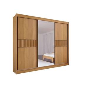 Guarda Roupa Casal com Espelho 3 Portas 6 Gavetas - Los Angeles Ripado-Cinamomo - Móveis D'Doro