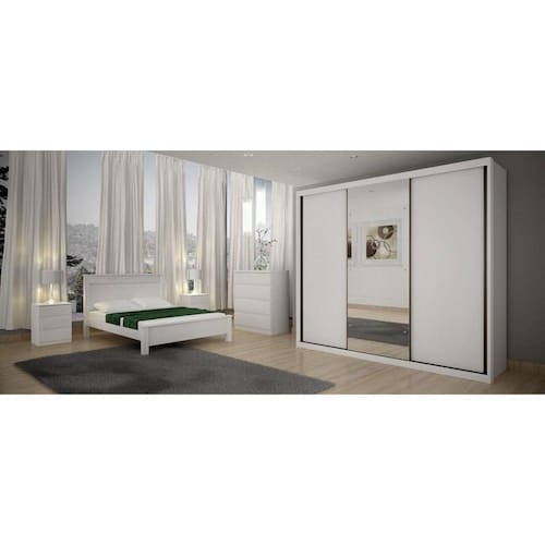 Guarda Roupa Casal com Espelho 3 Portas 6 Gavetas - Palazzo-Branco - Móveis Novo Horizonte