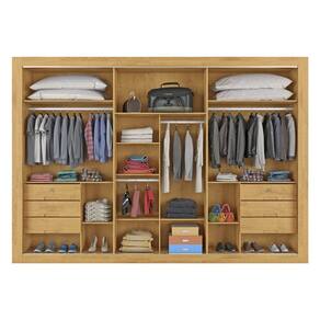 Particularidades do guarda-roupa: Características: - Fabricado em 100% MDF - Amplo espaço interno - Roldanas com sistema de amortecimento e regulagem - Gavetas espaçosas - Gavetas com corrediças telescópicas - Modulação interna versátil - Portas com detalhe ripado real - Costas parafusadas - Puxadores em perfil de alumínio - Profundidade ideal para acomodar cabides - Cabideiros resistentes em alumínio