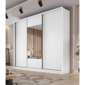 Guarda Roupa Casal com Espelho 3 Portas 8 Gavetas - Medelim-Branco - Móveis Novo Horizonte