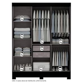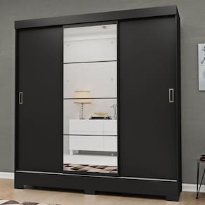 Guarda Roupa Atenas 3 portas é produzido 100% em MDP com 3 portas de correr e puxadores embutidos é ideal para qualquer espaço ele é bem divido contendo 3 prateleiras ,3 cabideiros e duas gavetas o que proporciona uma ótima organização. Acabamento da Prateleira: Pintura Escala de Brilho da Prateleira: Fosco Possui Cabideiros: 03 Acabamento da Gaveta: Pintura Escala de Brilho da Gaveta: Fosco Material do Puxador da Gaveta: Possui Organizador de Gaveta: Não Acabamento da Porta: Pintura Escala de Brilho da Porta: Fosco Material do Puxador da Porta: Acabamento dos Pés: Acompanha Cama Auxiliar: Acompanha Colchão: Altura da Cama: cm Altura do Espelho: 40,5 cm Altura do Espelho 01: cm Altura do Espelho 02: cm Altura do Espelho 03: cm Altura do Espelho 04: cm Altura do Espelho 05: cm Altura do Espelho 06: cm Altura dos Pés: 0,5 cm Ambiente Principal: Quarto Cama Auxiliar Acompanha Colchão: Cama Auxiliar Suporta Até (kg): kg Cama Suporta Até (kg): kg Complexidade da Montagem: Média: pode ser montado por mais de uma pessoa e/ou necessite de maior conhecimento para montagem Cor: Preto Cor do Produto: Preto Cor Flex: Cor Interna: Cinza Carvalho Escala de Brilho: Fosco Espessura do Espelho: 3 mm Fita Integrada: Formato do Espelho: Retangular Gaveta com Chave: Não Guarda-Roupa Suporta Até (kg): kg Informações Complementares: Itens Inclusos: 1 Guarda Roupa, Kit Ferragens e Manual de Montagem. Largura da Cama: cm Largura do Espelho: 52 cm Largura do Espelho 01: cm Largura do Espelho 02: cm Largura do Espelho 03: cm Largura do Espelho 04: cm Largura do Espelho 05: cm Largura do Espelho 06: cm Linha ou Coleção: Atenas Manual de Especificação Técnica: Manual de Montagem e Instalação: https://cdn2.madeiramadeira.com.br/atributo/maxel/746631-yc10-0013-manual-guarda-roupa-atenas-kit-p-s-e-kit-espelho.pdf Material da Gaveta: MDP Material da Porta: MDP Material da Prateleira: MDP Material dos Pés: Plástico Material Principal: MDP Montagem Flex: Necessita Montagem: Sim Origem do Produto: Nacional Peso: 96,8 kg Peso Máximo por Gaveta: 3 kg Peso Máximo por Prateleira: 6 kg Possui Calceiros: Não Possui Espaço para Vestidos Longos: Possui Espelho: Sim Possui Espelho Interno: Possui Ganchos: Possui iluminação: Possui Painel de TV: Possui Pés: 04 Possui Portas: 03 Possui Prateleiras: 04 Possui Sapateira: Profundida de Cama: cm Quantidade de Espelho: 02 Espelhos com Tamanhos Iguais Recomendações de Uso, Manutenção e Limpeza: Limpar com um pano seco. Sapatas Niveladoras: Não Sistema de Montagem: Parafusos e Cavilhas Tamanho do Colchão Indicado (L x C): Tamanho do Colchão Indicado Cama Auxiliar: Tipo de Corrediça da Gaveta: Metálica Simples Tipo de Dobradiça/Corrediça da Porta: Metálica Tipo de Estrado: Tipo de Fixação do Espelho: Parafusos Tipo de Gaveta: Interna Tipo de Guarda-Roupa: Casal Tipo de Madeira Maciça: Tipo de Madeira Maciça da Gaveta: Tipo de Madeira Maciça da Porta: Tipo de Madeira Maciça da Prateleira: Tipo de Madeira Maciça do Puxador da Gaveta: Tipo de Madeira Maciça do Puxador da Porta: Tipo de Madeira Maciça dos Pés: Tipo de Puxador da Gaveta: Não Possui Tipo de Puxador da Porta: Embutido