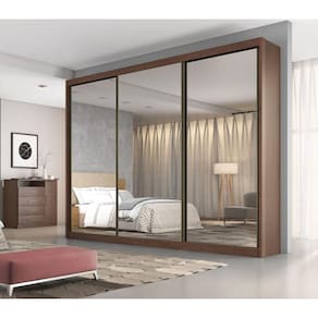 Guarda Roupa Casal com Espelho 3 Portas de Correr 6 Gavetas Diamond