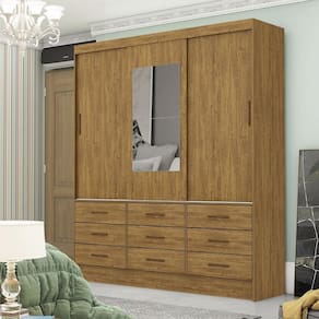 Apresentamos o incr?vel Guarda Roupa Casal com Espelho 3 Portas de Correr 9 Gavetas Sevilha Carioca M?veis, perfeito para quem busca praticidade e organiza??o com um toque de eleg?ncia! Este guarda-roupa foi projetado para otimizar o espa?o do seu ambiente e deixar tudo organizado. As tr?s portas, uma delas com espelho, proporcionam um visual moderno e funcional, enquanto as nove gavetas externas com corredi?as met?licas garantem um armazenamento eficiente para roupas, acess?rios e objetos pessoais.