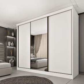 Guarda Roupa Casal com Espelho 3 Portas de Correr Monte Carlo Tcil - Branco