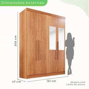 Este lindo Guarda Roupa 4 Portas 2 Gavetas França com espelho é um produto de excelente qualidade, diferenciado pela sua resistência, durabilidade, funcionalidade e beleza, ele é a melhor opção para deixar seu dormitório muito mais arrumado e convidativo. Com corrediças telescópicas que permitem uma abertura total das gavetas, parte interna espaçosa, divisões internas que oferecem praticidade e organização, puxadores de madeira que garante maior durabilidade, suporte embaixo das gavetas para dar uma sustentação reforçada e cabideiro em alumínio. Se encaixa facilmente em vários estilos de decoração com cores modernas. Aproveite, você merece! Acabamento da Prateleira: Pintura UV Escala de Brilho da Prateleira: Fosco Possui Cabideiros: 01 Acabamento da Gaveta: Pintura UV Material do Puxador da Gaveta: MDF Possui Organizador de Gaveta: Não Acabamento da Porta: Pintura UV Escala de Brilho da Porta: Fosco Material do Puxador da Porta: MDF Altura do Espelho: 70 Ambiente Principal: Quarto Complexidade da Montagem: Alta: deve ser montado por um montador especializado Cor: Cinamomo Cor do Produto: Cinamomo Escala de Brilho: Fosco Espessura do Espelho: 3 Formato do Espelho: Retangular Gaveta com Chave: Não Itens Inclusos: 1 Guarda Roupa, kit ferragens e manual de montagem Largura do Espelho: 20 Linha ou Coleção: FRANÇA Manual de Montagem e Instalação: https://cdn2.madeiramadeira.com.br/atributo/salleto/1715433-roupeiro-recife-4-portas.pdf Material da Gaveta: MDP Material da Porta: MDP Material da Prateleira: MDP Material Principal: MDP modular: Não Necessita Montagem: Sim Origem do Produto: Nacional Peso: 70 Peso Máximo por Gaveta: 5 Peso Máximo por Prateleira: 3 Possui Calceiros: Não Possui Espelho: Sim Possui Pés: Não Possui Portas: Sim Possui Prateleiras: Sim Quantidade de Espelho: 02 Espelhos com Tamanhos Iguais Quantidade de Gavetas: 02 Gavetas Quantidade de Prateleiras: 05 Prateleiras Recomendações de Uso, Manutenção e Limpeza: Limpar com flanela ou pano Pano levemente umedecido e pano seco. Não utilizar produtos de limpeza. Não utilizar produtos abrasivos. Não expor o produto diretamente à luz solar e à umidade. Sistema de Montagem: Parafusos, Cavilhas, Dobradiças e Puxadores. Tipo de Corrediça da Gaveta: Metálica Telescópica Tipo de Dobradiça/Corrediça da Porta: Metálica Tipo de Fixação do Espelho: Parafusos Tipo de Gaveta: Interna Tipo de Guarda-Roupa: Casal Tipo de Puxador da Gaveta: Externo Tipo de Puxador da Porta: Externo