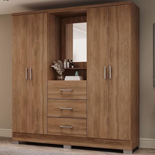 Conteúdo da Embalagem: 1 Guarda Roupa Casal com Espelho 4 Portas Roma Carraro Freijó