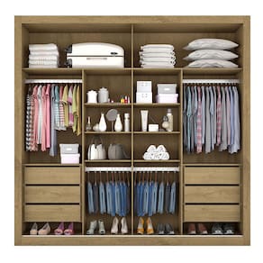 Quer dar um ar de modernidade ao seu dormitório? O Guarda Roupa Sevilha é ideal! Produzido com chapas 100% MDF, com costas parafusadas para dar maior durabilidade. Possui 2 portas de correr em simples abertura com trilho inferior de alumínio, roldana regulável com mola anti-descarrilhamento, perfil/puxador na cor Bronze, 6 gavetas com corrediças telescópicas que permitem deslizar suave, abertura total e maior suporte de peso (até 5kg), 10 prateleiras (suportam até 5kg) duas das prateleiras são removíveis para melhor adaptação do espaço conforme sua necessidade garantido melhor aproveitamento interno e 4 cabideiros em alumínio. Para afirmar a excelência do produto, as embalagens seguem as normas da ABNT, utilizando caixas em papelão reforçado, as peças são separadas com isomanta, os topos das caixas possuem reforço para evitar danos as quinas e o fechamento da caixa com fita de arquear e plástico termoincolhível. Utilizamos material ecologicamente correto. Este produto conta ainda com pintura verniz UV que da um lindo acabamento. É ideal para complementar a decoração de seu dormitório.