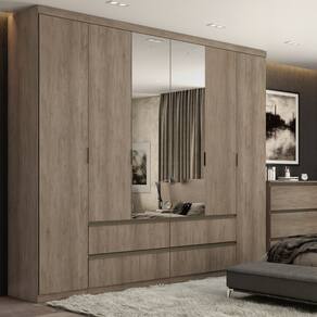 Guarda Roupa Casal com Espelho 6 Portas 4 Gavetas Nobre Glass THB - Marrom