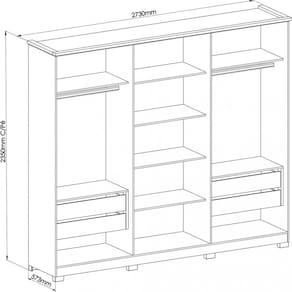 Dimensões: Altura: 235 cm Largura: 273 cm Profundidade: 57,3 cm Peso: 243,80 kg