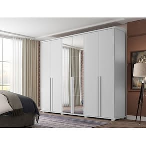 O Roupeiro Estrela – Rv Móveis é uma ótima opção em requinte e beleza para organizar seus objetos e roupas.Dimensões do produto montado:Altura: 235 cmLargura: 271 cmProfundidade: 58 cmObservações:– Moldura de 25 mm– 04 Gavetas com corrediças telescópicas– 05 Cabideiros em aluminio– 01 Prateleira– 08 Nichos internos– Acabamento interno na cor do produto– 03 Maleiros– 02 Portas centrais com espelho– 10 Pés - Puxadores em MDFMarca: RV MóveisModelo: EstrelaReferência: CD075BRWATENÇÃO: Não nos responsabilizamos pela montagem deste produto. Aconselhamos a contratação de um profissional.