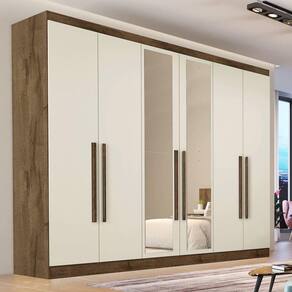 Guarda Roupa Casal com Espelho 6 Portas 6 Gavetas - Oslo-Braúna/Off White - Made Marcs