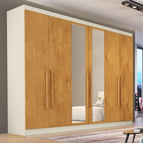 Guarda Roupa Casal com Espelho 6 Portas 6 Gavetas - Oslo-Off White/Peroba - Made Marcs