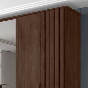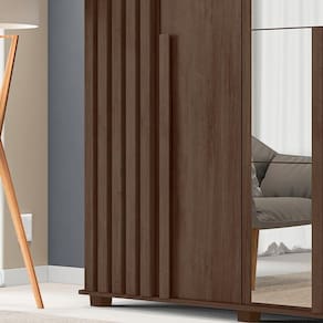 Leve a elegância do ripado para completar a decoração do seu quarto. O guarda-roupa casal Amsterdã da RV conta com 6 portas de bater, sendo que as duas das laterais contam com detalhes em ripado. Ele é um guarda-roupa grande e conta com uma excelente divisão no seu espaço interno. São 4 gavetas internas com corrediças telescópicas, cabideiros, maleiros e nichos. Você consegue organizar todos os seus pertences sem apertos. Suas portas centrais contam com espelhos, que trazem um ar de elegância e modernidade para o móvel. O guarda-roupa casal é produzido com madeiras MDF e MDP, materiais resistentes e com ótima durabilidade. Quer transformar seu quarto? Já garanta o seu roupeiro Amsterdã RV. NA