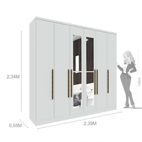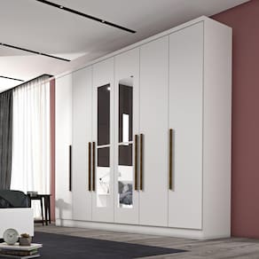 Deixe seu quarto organizado e funcional com o Guarda-Roupa Veneza. Esse roupeiro é perfeito para quem deseja aproveitar melhor os espaços de circulação no ambiente, garantindo maior mobilidade. Internamente, ele é bem compartimentado, para que tudo seja acomodado da melhor maneira possível com 8 prateleiras, 2 cabideiros, e calceiro, 2 maleiros e 4 gavetas. Acabamento da Prateleira: Pintura Escala de Brilho da Prateleira: Brilhante Possui Cabideiros: Sim Acabamento da Gaveta: Pintura Possui Organizador de Gaveta: Não Acabamento da Porta: Pintura Escala de Brilho da Porta: Brilhante Material do Puxador da Porta: MDF Ambiente Principal: Quarto codigo_ean: 7908439693271 Complexidade da Montagem: Alta: deve ser montado por um montador especializado Cor: Neve Cor do Produto: Neve Escala de Brilho: Fosco Espessura do Espelho: 3 mm Formato do Espelho: Retangular Itens Inclusos: 1 Guarda Roupa, Manual de Montagem e Kit Ferragens Linha ou Coleção: Veneza Manual de Montagem e Instalação: https://product-hub-prd.madeiramadeira.com.br/672957/documents/aa6900a8-cc9b-4576-bbc2-6e8e5f3f9ec8roupeiro6ptaslondresveneza.pdf Material da Gaveta: MDP Material da Porta: MDF Material da Prateleira: MDP Material Principal: MDP Necessita Montagem: Sim Origem do Produto: Nacional Peso: 183,2 kg Peso Máximo por Gaveta: 5 kg Peso Máximo por Prateleira: 10 kg Possui Calceiros: Não Possui Espelho: Sim Possui Pés: Não Possui Portas: Sim Possui Prateleiras: Sim Produto Montado: Sim Quantidade de Espelho: 02 Espelhos com Tamanhos Iguais Quantidade de Gavetas: 04 Gavetas Quantidade de Prateleiras: 08 Prateleiras Recomendações de Uso, Manutenção e Limpeza: Não colocar o produto em lugar úmido, não arrastar, limpar somente com pano macio e seco, não expor o produto a incidência de luz solar, não colocar peso superior ao indicado. Sistema de Montagem: Parafusos, pregos, cavilhas, entre outros. Tipo de Corrediça da Gaveta: Metálica Telescópica Tipo de Dobradiça/Corrediça da Porta: Metálica Tipo de Fixação do Espelho: Parafusos Tipo de Gaveta: Interna Tipo de Guarda-Roupa: Casal Tipo de Puxador da Gaveta: Não Possui Tipo de Puxador da Porta: Externo