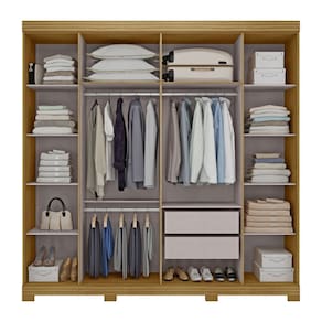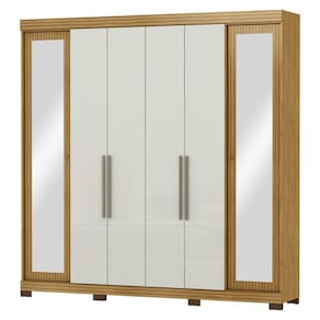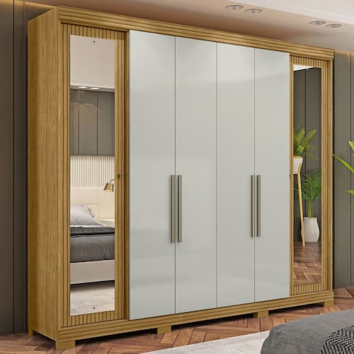 Guarda Roupa Casal com Espelho 6 Portas e Pés Bogotá Visão Móveis, Bogotá é a escolha perfeita para casais que desejam unir organização e elegância. Com suas seis portas, três cabideiros, duas gavetas espaçosas e diversas prateleiras, ele oferece a versatilidade necessária para que você organize seus pertences da maneira que preferir. A divisão interna e as medidas foram cuidadosamente planejadas para atender às demandas do dia a dia. Características: Estrutura: MDP 6 Portas 2 Gavetas Internas Pintura Estilo Ripado Espelhos inclusos Cabideiros em alumínio Corrediças metálicas Puxadores ABS Pés inclusos Peso suportado por prateleira: 8kg Peso suportado por gavetas: 3kg Dimensões: Altura: 230 cm Largura: 227,5 cm Profundidade: 46,5 cm Peso: 156,91 kg Garantia do fornecedor de 3 meses