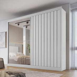 Guarda Roupa Casal com Espelho - Atlanta-Branco Acetinado - Made Marcs