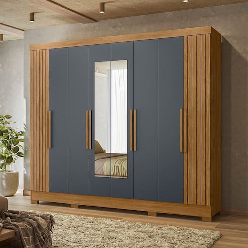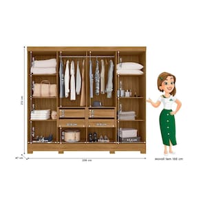 Com oito portas de giro e quatro gavetas espaçosas, o Guarda-Roupa Diplomata une