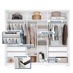 Que tal o Guarda-Roupa Decimus? Seu quarto de casal vai ficar ainda mais bonito e bem-organizado com o Guarda-Roupa Decimus te ajudando. Dispondo de 6 portas e 4 gavetas para receber seus itens de uso diário, ele também tem visual atemporal e sóbrio, destacando a cor neutra e o espelho, elementos que contribuem para uma decoração de encher os olhos. Por dentro, além de materiais de ótima resistência muito utilizados no mercado, o móvel tem gavetas com corrediças telescópicas, que abrem mais e com maior facilidade, permitindo que você tenha fácil acesso aos itens guardados nelas. Completo, né? Marca: Modern