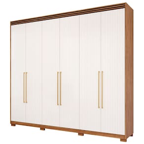 Características: Estrutura 100 em MDF Acabamento Grafiato 6 Portas 5 Gavetas internas Corrediças telescópicas Moldura superior ripada Puxadores em alumínio Dobradiças com amortecimento Espelho interno Cabideiro em alumínio Pés em ABS