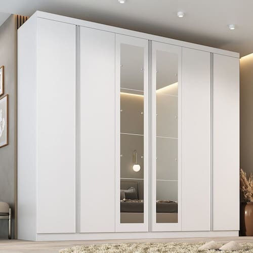 O Guarda Roupa Monte Carlo é perfeito para você que busca espaço e versatilidade para seu dia a dia. Acabamento da Prateleira: Pintura Escala de Brilho da Prateleira: Fosco Acabamento da Gaveta: Pintura Possui Organizador de Gaveta: Não Acabamento da Porta: Pintura UV Escala de Brilho da Porta: Brilhante Altura do Espelho: 48 cm Altura dos Pés: cm Ambiente Principal: Quarto codigo_ean: 7900288163547 Complexidade da Montagem: Média: pode ser montado por mais de uma pessoa e/ou necessite de maior conhecimento para montagem Cor: Branco Cor do Produto: Branco Cor Interna: Cinza Escala de Brilho: Brilhante Espessura da Estrutura (mm): 12 mm Espessura das Portas (mm): 15 mm Espessura das Prateleiras (mm): 12 mm Espessura do Espelho: 3 mm Espessura do Fundo (mm): 3 mm Espessura do Fundo das Gavetas (mm): 3 mm Formato do Espelho: Retangular Itens Inclusos: 1 Guarda-Roupa e Manual de Montagem Largura do Espelho: 25 cm Linha ou Coleção: Monte Carlo Manual de Montagem e Instalação: https://product-hub-prd.madeiramadeira.com.br/183909507/documents/57b42173-0a06-407e-977a-bcc5ba83781c2957423286417483733989669.pdf Marca: Maxel Material da Gaveta: MDP Material da Porta: MDP Material da Prateleira: MDP Material Principal: MDP modular: Não Necessita Montagem: Sim Origem do Produto: Nacional Peso: 178,79 kg Peso Máximo por Gaveta: 3 kg Peso Máximo por Prateleira: 7 kg Possui Calceiros: Não Possui Espelho: Sim Possui Pés: Não Possui Portas: Sim Possui Prateleiras: Sim Produto Montado: Sim Quantidade de Espelho: 08 Espelhos com Tamanhos Iguais Quantidade de Gavetas: 06 Gavetas Recomendações de Uso, Manutenção e Limpeza: Pano seco ou levemente umedecido, não usar produtos abrasivos Sistema de Montagem: Parafusos, cavilhas, pregos e dispositivos plásticos. Tipo de Corrediça da Gaveta: Metálica Telescópica Tipo de Dobradiça/Corrediça da Porta: Metálica Tipo de Fixação do Espelho: Parafusos Tipo de Gaveta: Interna Tipo de Guarda-Roupa: Casal Tipo de Puxador da Gaveta: Não Possui Tipo de Puxador da Porta: Externo