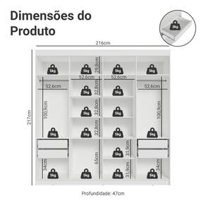 Possui uma pintura de alta resistência, que garante durabilidade e um acabamento impecável por muito mais tempo. A estrutura é na cor Branca, as portas e puxadores em Preto, criando um visual sofisticado que se adapta a qualquer estilo de decoração. Os puxadores de 80 cm, fabricados em MDF, são um dos grandes diferenciais, trazendo um design alongado e moderno.
