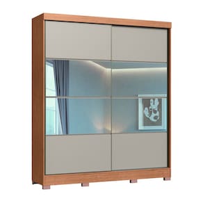 Características: 2 Cabideiros de alumínio 2 Espaços para maleiro 4 Gavetas com corrediças telescópicas de extração total 8 Nichos 2 Portas de Correr Acompanha 4 espelhos 50,3x98,3mm e 3mm espessura Detalhe na porta com acabamento em 45° Estrutura 100 em MDF Perfil puxador em alumínio Perfil acabamento em alumínio nas portas Portas deslizantes com sistema de freio Possui pés