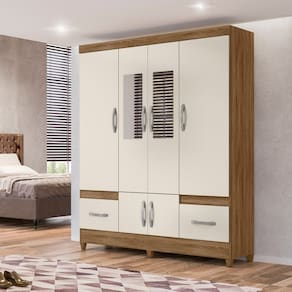 Características: 6 Portas, sendo 2 com espelhos Produto em MDP Corrediças metálicas Portas e frentes de gaveta de 15mm Bastão em madeira reflorestado revestido Pés em PVC Puxadores na tonalidade bronze