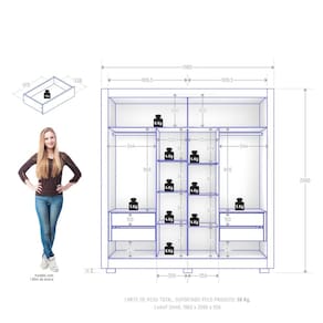 Dimensões: Altura: 209 cm Largura: 196 cm Profundidade: 55,3 cm Peso: 129,5 kg