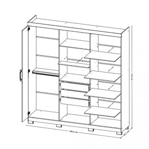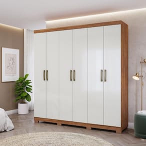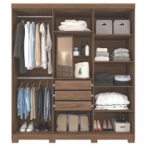 Características: 3 Gavetas 6 Portas 6 Prateleiras Cabideiros em alumínio Corrediça telescópica Dobradiça 26mm Estrutura 100MDF Possui pés Possui um espelho interno Puxadores Duna