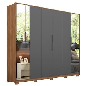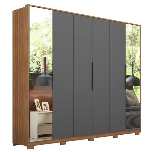 Guarda Roupa Casal Com Pés 6 Portas 2 Com Espelhos Atrice D02 Amendola/Grafito - Mpozenato - Grafite