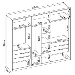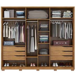 Em busca de um guarda roupa espaçoso e elegante para completar seu quarto e ainda não achou? Fica tranquilo e venha conferir o que temos para você!Guarda Roupa Casal Atrice, feito em MDP faz com que todos os detalhes sejam de ótima qualidade, ele possui os compartimentos ideais para acomodar todas as coisas, desde as roupas até os acessórios.Perfeito para decorar seu dormitório, o Guarda Roupa Atrice vem com amplo espaço interno devido as repartições serem bem distribuídas, esse roupeiro conta com 6 gavetas, 3 cabideiros. 4 prateleiras, lugares para organizar os sapatos e um grande maleiro para deixar os enxovais arrumados e também 6 portas com abertura convencional, sendo que duas delas vem acompanhada de espelhos e o design dos pés dá aquele toque de modernidade e elegância ao ambiente de descanso.Gostou do que viu? Corra e garanta esse excelente guarda roupa!EspecificaçõesDimensões do Produto:Largura: 267 cm.Altura: 235 cm.Profundidade: 55 cm.Peso: 234,12 Kg.Características dos Produtos:Material da Estrutura: MDP.Peso Suportado: 5kg tampo, 4kg por prateleira, 4kg por gaveta, 8kg base.Acabamento: Pintura UV.Escala de Brilho: Fosco.Possui Pés: Sim.Possui Gaveta: Sim.Quantidade de Gavetas: 6 Gavetas.Tipo de Corrediça: Telescópica.Possui Prateleiras: Sim.Quantidade de Prateleiras: 4 Prateleiras.Possui Portas: Sim.Quantidade de Portas: 6 Portas.Tipo de Portas: Convencional.Possui Cabideiros: Sim.Quantidade de Cabideiros: 3 Cabideiros.Possui Espelhos: Convencional.Quantidade de Espelhos: 2 Espelhos.Diferenciais:- Design Moderno.- Amplo espaço interno.- Tem um maleiro espaçoso.- Pés quadrado em plástico.-Sistema de montagem: Parafusos/ Cavilhas/ Pregos.Manual de montagem: Sim.Complexidade da Montagem: Alta.Conteúdo da Embalagem: 1 Roupeiro.Volumes: 6 Volumes.Garantia do fabricante: 90 dias contra defeito de fabricação.Montagem: Aconselhamos que seja feita por um profissional.Recomendação de limpeza: Utilize pano levemente úmido.Observações importantes:- Produto para uso residencial em ambiente interno, não devendo ficar exposto diretamente ao sol, calor e umidades excessivas.- Pode haver alguma diferença de tonalidade entre a imagem e o produto real, por conta do tratamento de imagens e a calibração de cores do seu monitor.- As imagens são meramente ilustrativas, não acompanham objetos de decoração e eletrônicos.- Confira o estado da embalagem, não devendo assinar o comprovante em caso de danos.- Não asseguramos, no ato da entrega, por subir escadas/elevadores, pelo transporte por guincho em apartamentos ou montagem, desmontagem e instalações. Eventuais despesas são por conta do comprador.- Confira as dimensões do produto e certifique-se de que passará normalmente por supostos elevadores, portas, escadas e/ou corredores de sua residência.
