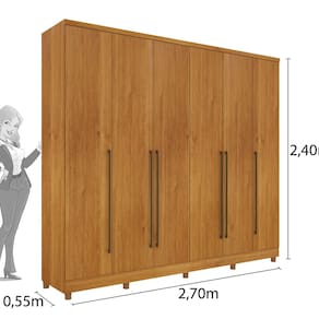 O Guarda Roupa 6 Portas Sevilla possui design minimalista, destacando os belos puxadores em alumínio. Produzido em MDP, com espaço ele e ela, 8 gavetas com corrediças metálicas, puxadores em alumínio de alto acabamento, 8 prateleiras independentes, espaço para longos, maleiro amplo, dobradiças 26mm, espelhos e pés opcionais. Acabamento da Prateleira: Pintura Escala de Brilho da Prateleira: Fosco Possui Cabideiros: 03 Acabamento da Gaveta: Pintura Escala de Brilho da Gaveta: Fosco Material do Puxador da Gaveta: Alumínio Possui Organizador de Gaveta: Não Acabamento da Porta: Pintura Escala de Brilho da Porta: Fosco Material do Puxador da Porta: Alumínio Acabamento dos Pés: Pintura Altura do Espelho: cm Altura dos Pés: 6 Ambiente Principal: Quarto Complexidade da Montagem: Média: pode ser montado por mais de uma pessoa e/ou necessite de maior conhecimento para montagem Cor: Cinamomo Cor do Produto: Cinamomo Escala de Brilho: Semi-Brilho Espessura do Espelho: mm Gaveta com Chave: Não Itens Inclusos: 1 Guarda Roupa Kit Ferragens e Manual de Montagem. Largura do Espelho: cm Linha ou Coleção: Sevilla Manual de Montagem e Instalação: https://cdn2.madeiramadeira.com.br/atributo/tcil-moveis/790495-12921-esquema-de-montagem-roupeiro-6-portas-sevilla-8-gavetas.pdf Material da Gaveta: MDP Material da Porta: MDP Material da Prateleira: MDP Material dos Pés: PVC Material Principal: MDP Necessita Montagem: Sim Origem do Produto: Nacional Peso: 216 Peso Máximo por Gaveta: 10 Peso Máximo por Prateleira: 25 Possui Calceiros: 01 Possui Espelho: Não Possui Pés: 08 Possui Portas: 06 Possui Prateleiras: 12 Recomendações de Uso, Manutenção e Limpeza: Limpar com flanela ou pano macio seco, não utilizar produtos abrasivos, desengordurantes, álcool ou solvente. Não expor o produto diretamente à luz solar e à umidade. Sapatas Niveladoras: Não Sistema de Montagem: Parafusos e Cavilhas. Tipo de Corrediça da Gaveta: Metálica Simples Tipo de Dobradiça/Corrediça da Porta: Metálica Tipo de Gaveta: Interna Tipo de Guarda-Roupa: Casal Tipo de Puxador da Gaveta: Não Possui Tipo de Puxador da Porta: Externo