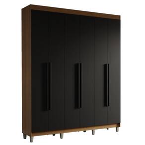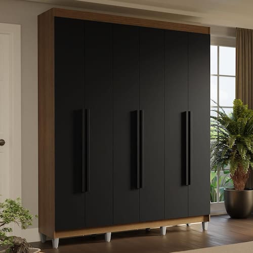 Guarda-Roupa Casal com Pés 6 Portas Batentes Rustic/Preto/Preto Saturno Madesa