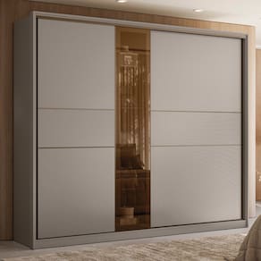 O Guarda Roupa Casal com Vidro Reflecta 2 Portas de Correr em MDF Authentic Demobile e produzido em MDF com pintura UV de alta resistencia, garantindo durabilidade e sofisticacao. Possui acabamento Prime TX e Touch, que oferecem toque agradavel e aspecto natural da madeira. Suas portas de correr com montagem flex e detalhe em vidro reflecta valorizam o ambiente. Conta ainda com cabideiros metalicos, gavetas e sapateira com corredicas telescopicas, puxadores resistentes e mini sapatas que protegem o piso.