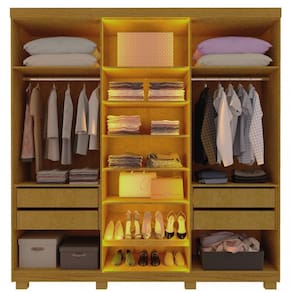 Características: Estrutura em MDF 6 Portas sendo 2 com vidro reflecta 4 Gavetas internas Corrediças telescópicas Puxadores em MDF e metálicos LED Sapateira inclinada Pés Cada prateleira suporta até 5kg Cada gaveta suporta até 5kg