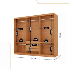 Dimensões do Roupeiro: Altura: 208 cm Largura: 182 cm Profundidade: 47 cm