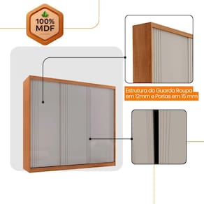 Guarda Roupa Casal Connor Mdf 3pts De Correr Moderna Mobília Naturalle/off White Guarda-roupa Connor 100 MDF 3 portas de correr Seu guarda-roupa de 3 portas de correr 100 MDF e uma escolha excelente, pois esse material oferece alta durabilidade e resistencia. Alem de garantir um acabamento mais sofisticado, o MDF tambem contribui para a estabilidade e longa vida util do movel. Com 3 prateleiras e 6 cabideiros, ele oferece bastante praticidade para organizar roupas e acessorios de forma eficiente, tudo com um design que economiza espaco e agrega valor ao ambiente. Esse tipo de estrutura e ideal para quem busca qualidade sem abrir mao de um design funcional!