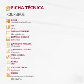 Dimensoes do Roupeiro: Altura: 208 cm Largura: 182 cm Profundidade: 47 cm Peso: 92,89 kg