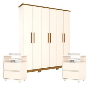 Guarda Roupa Casal Cover com Kit Mesa de Cabeceira Campeche Off White Nature - Henn