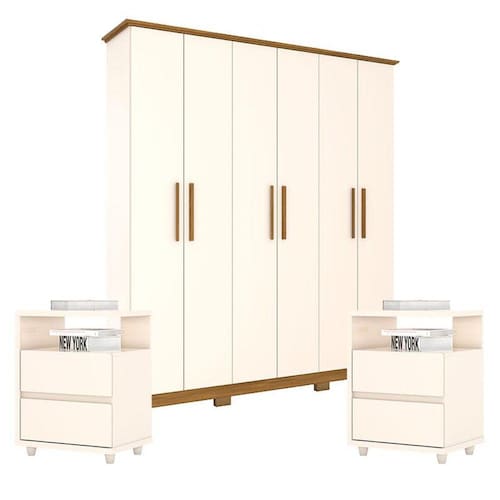 Para deixar o quarto mais prático e moderno apresentamos esse combo de Guarda Roupa da linha Cover com 2 Mesas de Cabeceira da linha Campeche é ideal, foi fabricado pela Henn com matérias de alto padrão proporcionando resistência e durabilidade do móvel. Desenvolvido com lindo design que remete beleza e sofisticação ao seu quarto. É perfeito para complementar o ambiente. Aproveite e garanta já sua!