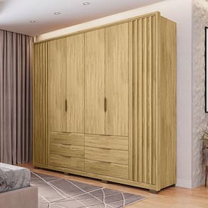 O Guarda Roupa Casal Decorativo Decimus é a expressão máxima de luxo, funcionalidade e espaço para o seu quarto. Produzido com excelência em MDP, este guarda-roupa é um testemunho da qualidade e elegância. Conta com Design de Prestígio: Os puxadores inteiriços em MDF revestidos nas portas laterais conferem ao Decimus um toque de prestígio e modernidade. Fechamento Suave: Seis portas com dobradiças soft close garantem um fechamento suave e silencioso, oferecendo praticidade e conforto. Gavetões Espaçosos: Seis gavetões externos com puxadores em alumínio e corrediças telescópicas proporcionam um amplo espaço de armazenamento adicional. Organização Eficiente: Com dois cabideiros em alumínio e quatorze repartições internas, você terá o espaço ideal para organizar suas roupas e acessórios. Versatilidade de Montagem: As sapatas e pés inclusos permitem a montagem do guarda-roupa com ou sem pés, adaptando-se perfeitamente às suas necessidades. O Guarda Roupa Casal Decorativo Decimus é a escolha suprema para aqueles que buscam um guarda-roupa que una luxo, organização e qualidade excepcionais. Transforme o seu quarto com este móvel versátil, mantendo suas roupas e pertences organizados com estilo impecável.