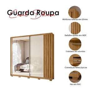 Guarda Roupa Casal Dhara 2 Portas Freijó Off White com Espelho - Moval