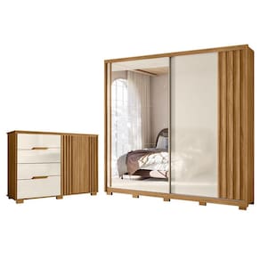 Guarda Roupa Casal Dhara 2 Portas Freijó Off White com Espelho - Moval