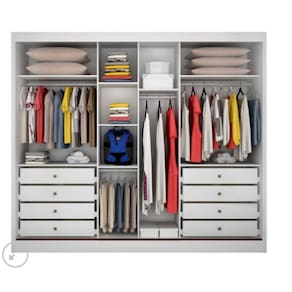 Guarda Roupa Casal Diamond 3 Portas 8 Gavetas 1 Espelho Novo HorizonteO Roupeiro Diamond é um daqueles móveis feitos para organizar e embelezar o ambiente. Ele tem compartimentos que ajudam a arrumar o quarto com facilidade. Com visual elegante, o móvel chama a atenção. A primeira vista, o que costuma impressionar é seu estilo moderno, que se destaca pela simplicidade das linhas retas e as portas de correr sem detalhes, com puxadores nas laterais. Isso reforça a sensação de que ele ocupa pouco espaço.Outro ponto importante é o fato de ele ser um Roupeiro com espelho na porta central. Além de ser chamativo, esse elemento ajuda na rotina, trazendo praticidade para quem vai se arrumar antes de sair.Medidas do Produto Montado:Altura: 236 cmLargura: 241 cmProfundidade: 56 cm.Características:- Produzido em mdf. Esse material é durável contra a ação do tempo e firme contra a envergadura por peso;- Reforço no espelho, que é revestido com película de segurança, reduzindo o risco de quebra;- Corrediças telescópicas nas gavetas que permitem um deslize amplo e suave no movimento de puxar;- Possui cabideiro e calceiro em alumínio, e o trilho inferior possui roldanas para rolamento;- Espaço reservado para roupas longas;- Prateleiras espaçosas para organização de camisas, calças, acessórios e até o jogo de cama;- 8 Gavetas;- 8 Prateleiras;- 4 Cabideiros;- Necessário Montagem: Sim.Recomendações de uso, manutenção e limpeza: Pano levemente umedecido com sabão neutro.Informações importantes:- Não responsabilizamos pela montagem e instalação dos produtos. A montagem deve ser realizada por um profissional, conforme as instruções do manual do produto. A responsabilidade da montagem é do consumidor.- Os Objetos que ambientam as imagens não acompanham o produto.- Pode haver alguma diferença de tonalidade entre a foto e o produto, devido ao tratamento de imagens e a calibração do seu monitor ou dispositivo.- A entrega é realizada por transportadora, não nos responsabilizamos, no ato da entrega por desmontagens, subir escadas/elevadores ou transporte por guincho para apartamentos. Eventuais despesas são de responsabilidade do consumidor.- Antes de comprar o seu produto verifique as medidas e o local onde pretende instalar.
