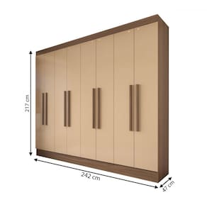 O(a) Guarda-Roupa Casal Califórnia 8 Portas 4 Gavetas Castanho/Nude - Doripel é produzido em MDF na escala de brilho Semi-Brilho, e possui um grau de dificuldade de montagem: Médio.