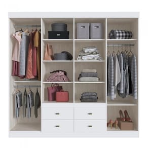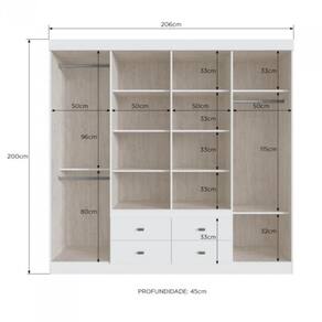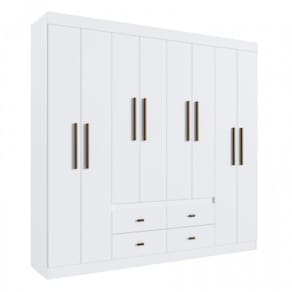 O Guarda-Roupa Doripel Las Vegas possui estrutura em MDF com 8 portas e 4 gavetas internas. Conta com prateleiras e cabideiros distribuídos para facilitar a organização. Disponível nas cores Branco e Off White/Nogueira.