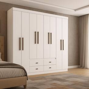 Guarda-Roupa Doripel Las Vegas – 8 Portas e 4 Gavetas – Branco ou Off White/Nogueira
