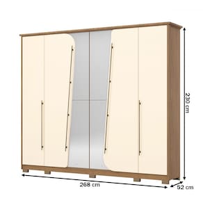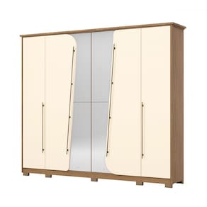 O(a) Guarda-Roupa Casal Dubai 6 Portas 6 Gavetas com Espelho Natural/Off White - Henn  é produzido em MDF e MDP na escala de brilho Fosco, e possui um grau de dificuldade de montagem: Médio.