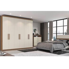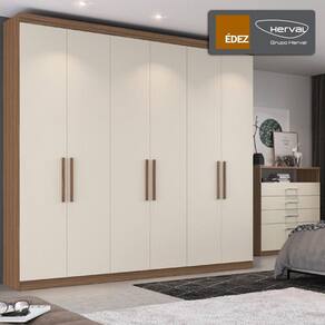 Guarda-Roupa Casal 6 Portas Édez Luna, Off White e Nogueira, 233 cm